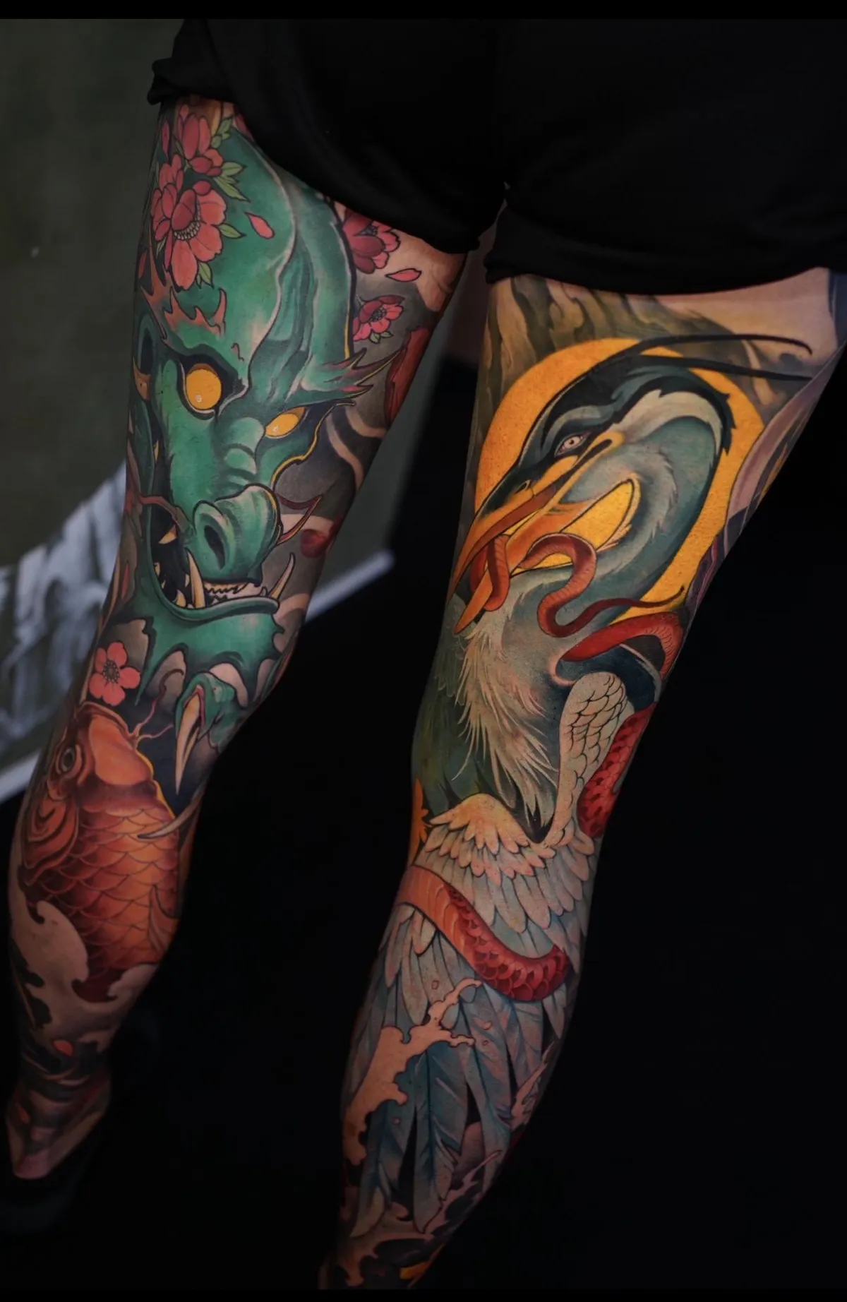 Mit navn er Alex, og jeg har tatoveret siden 2013. Gennem min karriere har jeg arbejdet med både photorealisme og traditionel tatoveringsstil, hvilket har ført til, at jeg har udviklet min egen karakteristiske stil.